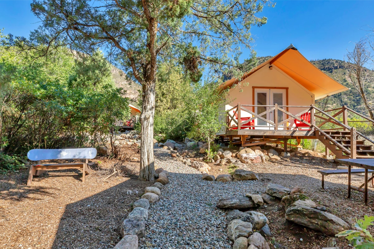 Glenwood Canyon Resort is the only lodging and camping spot inside beautiful Glenwood Canyon, just east of Glenwood Springs. With cabins, suites, RV sites, and riverside tent spaces, you’ll find a comfortable place to unwind while taking in the Colorado scenery.