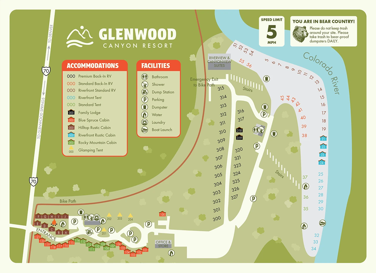 Take a look at our Resort map to discover the nearest attractions and facilities near your site. This is also a great way to pick out the perfect site location for you and your family!